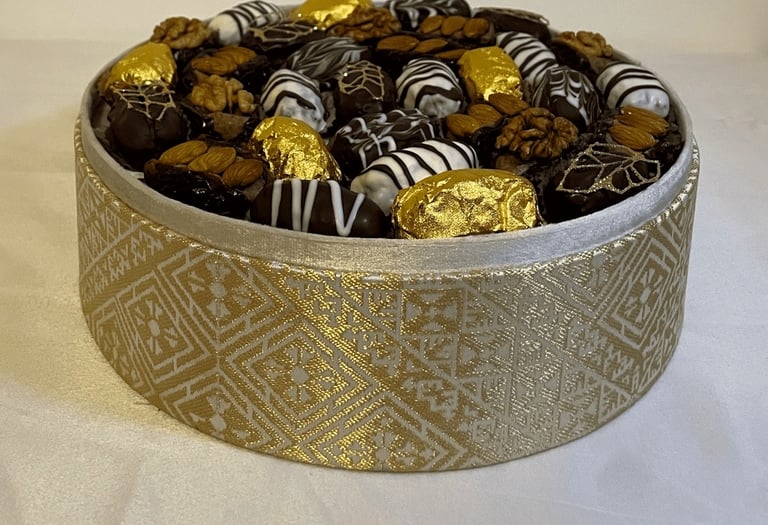 Nous réalisons plateaux de fiançailles, cadeaux personnalisés, accessoires henné et décorations sur mesure, pour chaque moment unique.